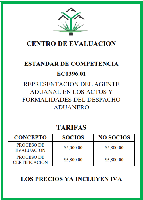 EC0396.01: Representación del Agente Aduanal en los Actos y Formalidades del Despacho Aduanero.